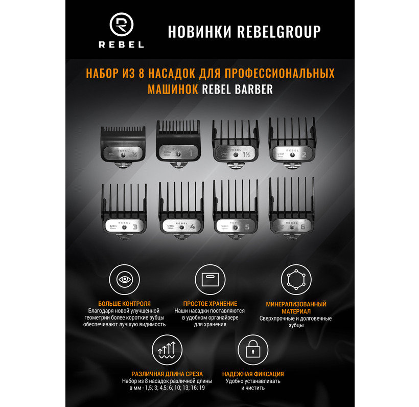Комплект насадок для профессиональных машинок REBEL BARBER 8 шт.