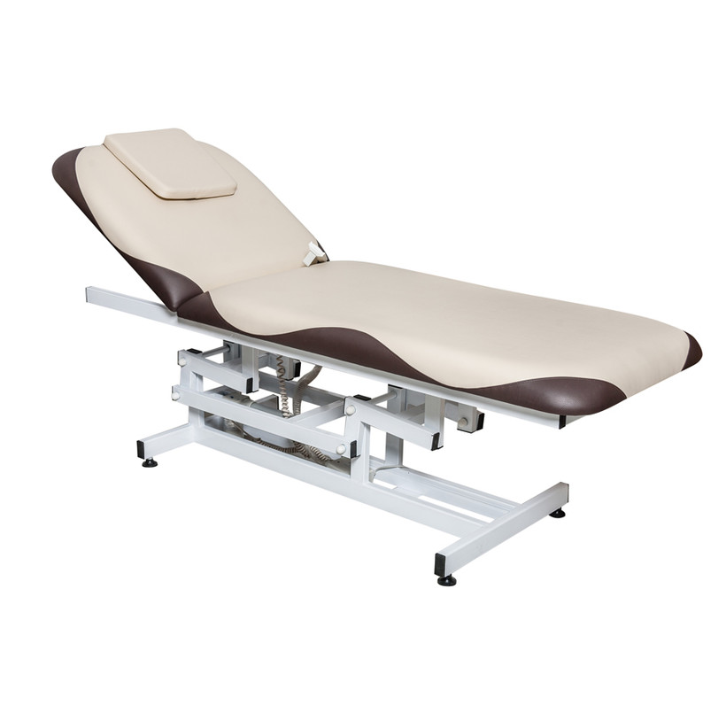 Многофункциональная кушетка для массажа с электрической регулировкой высоты кушетки и угла наклона спинки. В комплект входит накладная подушка, закрывающая при необходимости отверстие для лица.