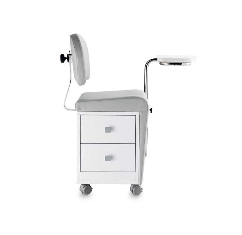 Стойка для экспресс-маникюра. Маникюрная стойка оснащена колесиками для удобства перемещения, специальной регулируемой пластиковой полочкой (рабочая поверхность) и двумя выдвижными ящиками. Каркас стойки выполнен из дерева, мягкие элементы сиденья и спинки выполнены из искусственной кожи высшего качества.