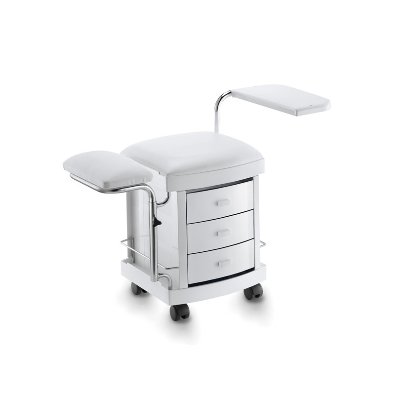 Универсальная экспресс-стойка для проведения процедур по маникюру-педикюру. Стойка оснащена колесиками для удобства перемещения, тремя выдвижными ящиками закрытого типа и специальными полочками которые регулируются по высоте. Каркас стойки выполнен из прочного пластика, мягкие элементы сиденья и 1 рабочей полочки выполнены из искусственной кожи высшего качества.