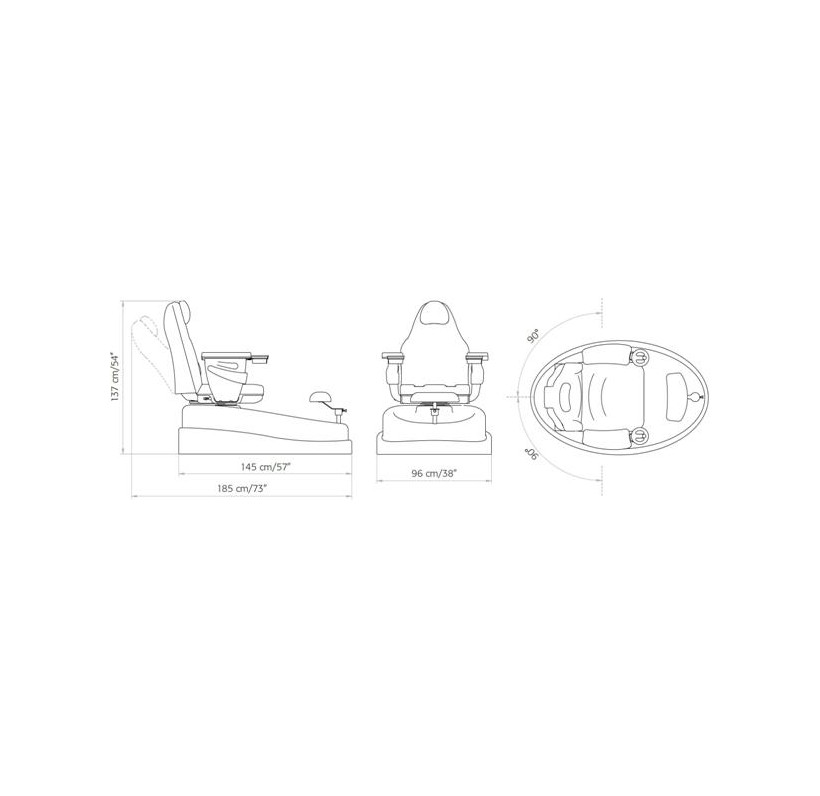 PEDI SPA ECO гарантирует клиентам абсолютный комфорт благодаря вращающемуся креслу, изготовленному из высококачественных материалов и оснащенному механизмом горизонтального перемещения, регулируемой спинкой и удобными широкими подлокотниками. Кресло оборудовано удобной и мягкой опорой для стоп, которая может регулироваться по высоте и длине, легко адаптируясь к росту клиента.