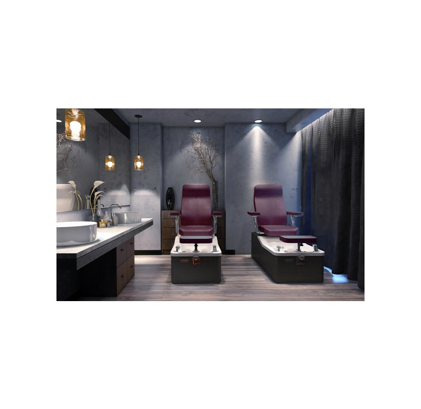 CAPRI PEDI SPA гарантирует клиентам абсолютный комфорт благодаря вращающемуся креслу, изготовленному из высококачественных материалов и оснащенному электрическим механизмом горизонтального перемещения, регулируемой спинкой, с помощью газ-лифта, и удобными широкими подлокотниками. Кресло оборудовано удобной и мягкой опорой для стоп, которая может регулироваться по высоте и длине, легко адаптируясь к росту клиента.