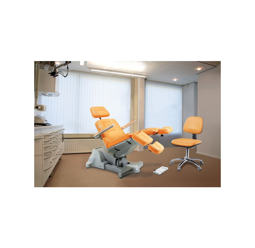 Педикюрное кресло PODO MIX 3M предназначено для проведения процедуры педикюра. Анатомический матрас имеет эргономичную форму, делая кресло более функциональным, безопасным и комфортным для клиента во время проведения процедур. Кресло оснащено тремя электромоторами, с помощью которых регулируются высота, наклон спинки и угол наклона кресла (тренделенбург), регулировки осуществляются за счет ножного пульта управления, угол наклона подножных частей, регулируется механически. Система полной электрической регулировки делает педикюрное кресло PODO MIX 3M идеальным решением для профессионалов, стремящихся создать комфортные условия работы. Наличие трех электроприводов позволит подобрать наиболее удобное положение и высоту, клиент может удобно сесть в кресло благодаря его минимальной высоте, составляющей 52 см., а мастер работает в условиях максимального комфорта, имея возможность выполнять процедуры сидя или стоя: максимальная высота кресла составляет 105 см. Кресло комплектуется плоскими подлокотниками, регулируемым подголовником и имеет возможность поворота на 180°. Каркас кресла выполнен из оцинкованной стали и полностью закрыт пластиком ABS, что придает креслу элегантность и обеспечивает его безопасность. Широкая цветовая палитра искусственной кожи, на заказ.