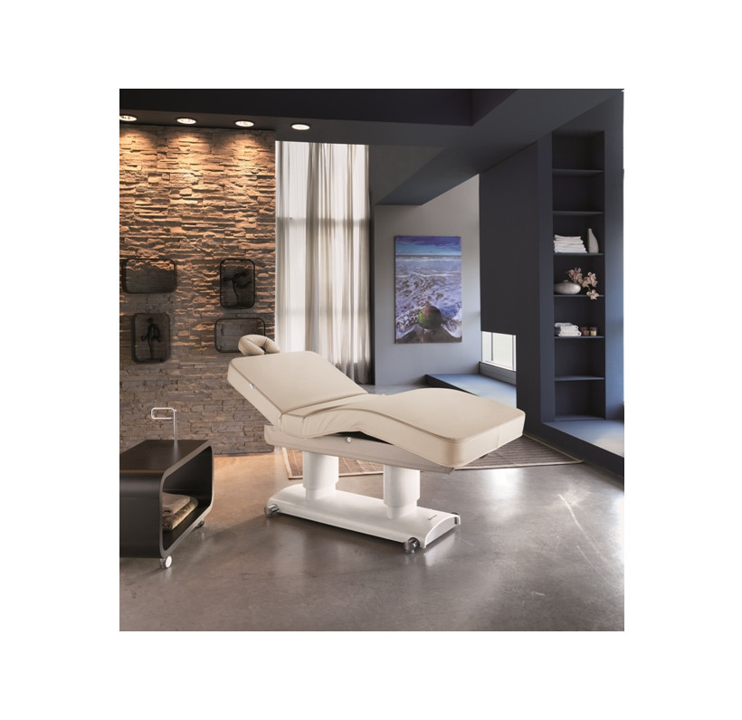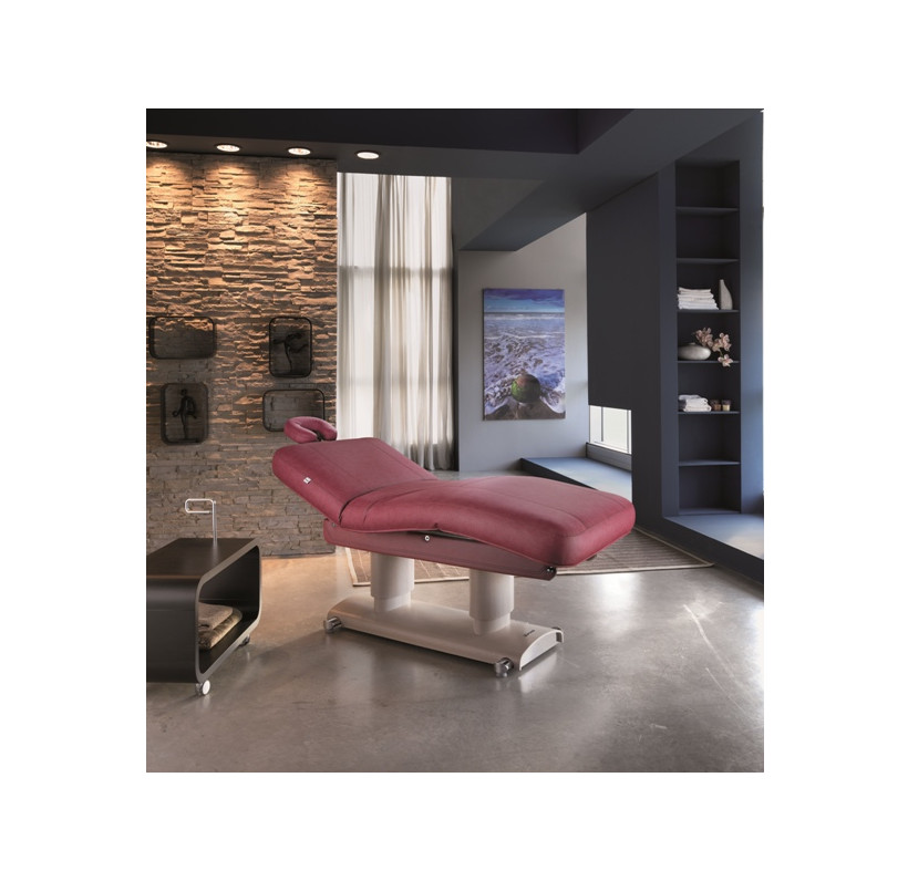 Многофункциональная кушетка GEMYA для массажа и SPA процедур для лица и тела, способна обеспечить максимальный комфорт. Кушетка оснащена тремя электромоторами, с помощью которых регулируются высота, наклон спинки и сидения (ножной части), регулировки осуществляются за счет ручного пульта управления. Комплектуется американским подголовником с отверстием для лица. Основание кушетки изготовлено из натурального дерева.