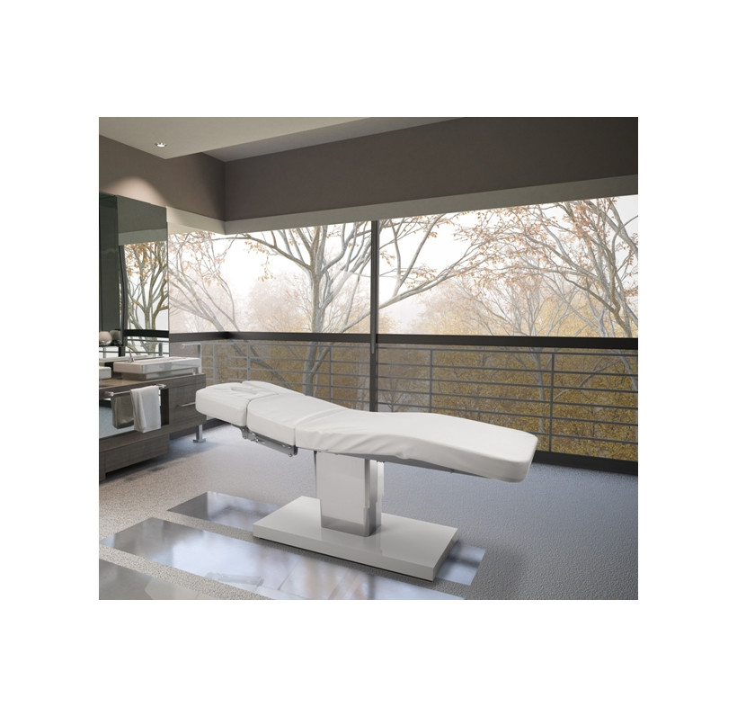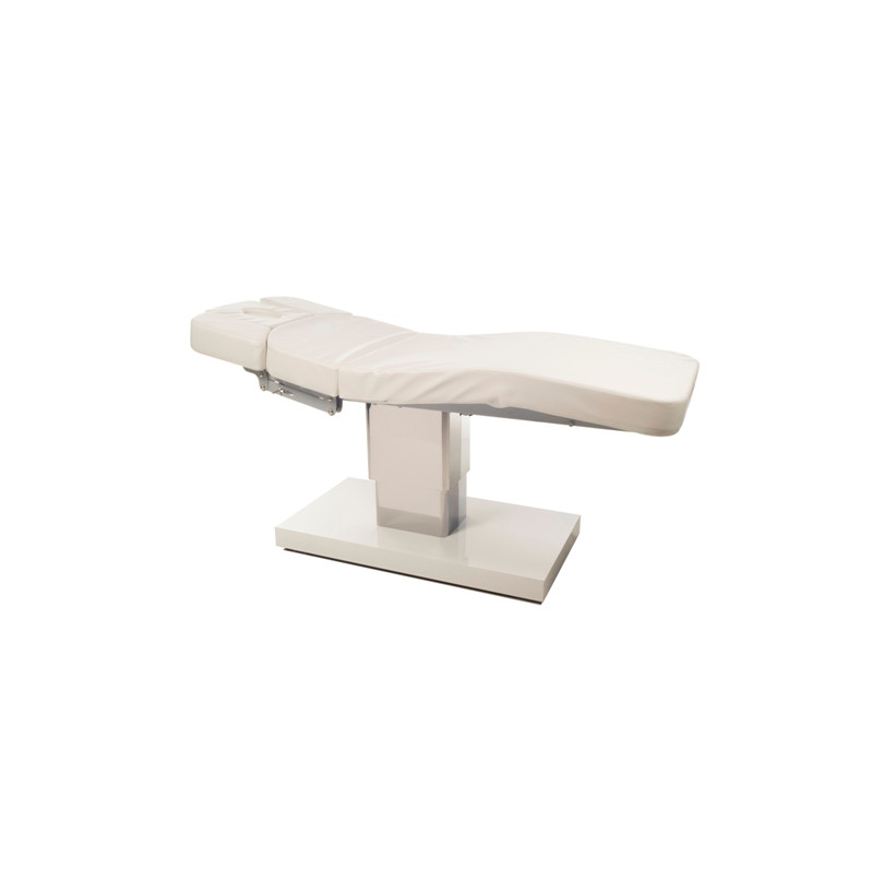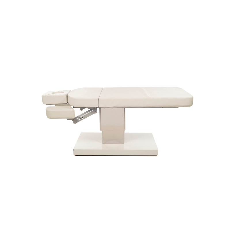 Многофункциональная кушетка FLEX для массажа и SPA процедур для лица и тела, способна обеспечить максимальный комфорт. Кушетка оснащена тремя электромоторами, с помощью которых регулируются высота, наклон спинки и сидения (ножной части), регулировки осуществляются за счет пульта управления. Матрас кушетки обеспечивает исключительный комфорт благодаря особой форме, отличающейся регулируемыми встроенными подлокотниками с изменяемым наклоном и встроенным подголовником с отверстием для лица с заглушкой, подголовник также регулируется по углу наклона. Значительно облегчает массажисту выполнение различных видов массажа. В частности, позволяет занять более удобное лежачее положение, поскольку подлокотники помогают полностью расслабить мышцы спины и шеи, благодаря чему повышается эффективность массажа.