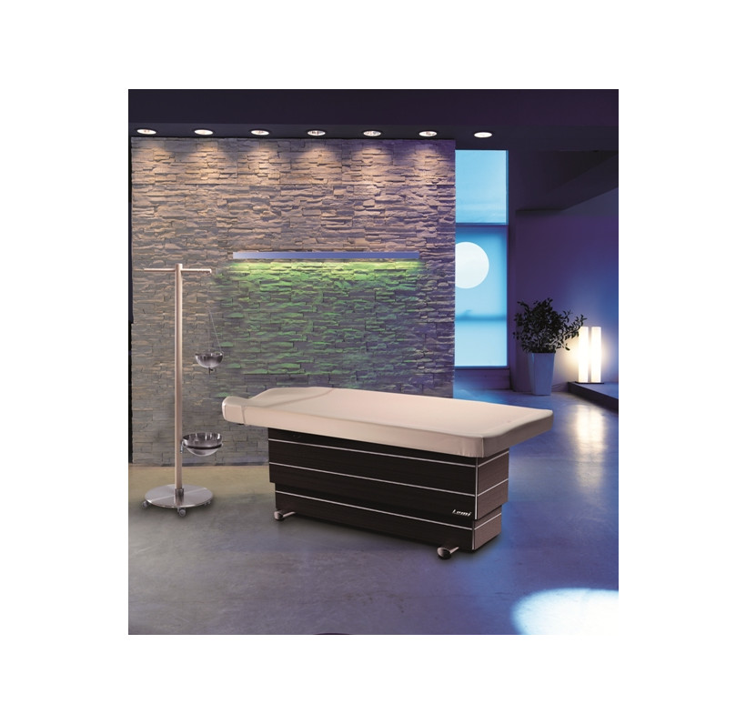 Кушетка AYURVEDA V предназначена для проведения аюрведических процедур. Кушетка оснащена одним электромотором, с помощью которого регулируется высота, регулировка осуществляется за счет ножного пульта управления. Комплектуется вогнутым подголовником. Это позволяет клиенту чувствовать себя комфортно на протяжении всей процедуры. Матрас бежевого цвета маслостойкий и выполнен без швов (невозможно выбрать другой цвет матраса). Основание кушетки изготовлено из натурального дерева с алюминиевыми вставками.