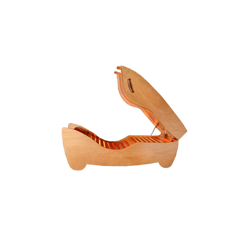 Паровая кабина в виде кушетки-шезлонга Thalaxoterm PRESTIGE® для SPA процедур выполненная полностью из массива ценной породы дерева Okumè, обработанного вручную, достоинствами которого являются прочность и влагостойкость.