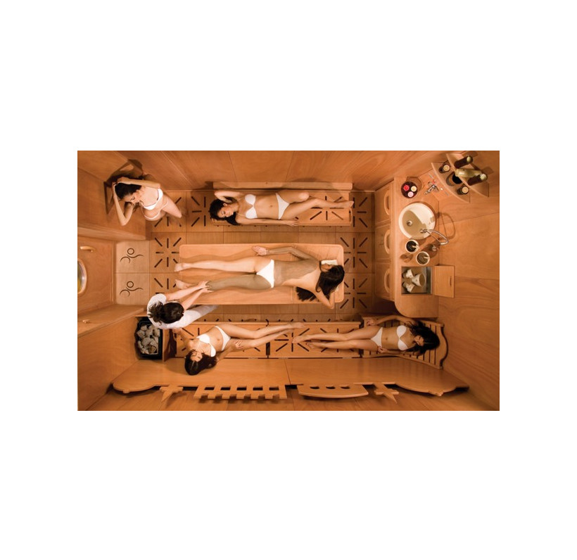 Паровая кабина Thalatepee Suite Prestige® для SPA процедур выполненная полностью из массива ценной породы дерева Okumè, обработанного вручную, достоинствами которого являются прочность и влагостойкость. Thalatepee Suite® создает идеальные условия полной звукоизоляции, с расслабляющим микроклиматом (температуры воздуха и влажности), музыкой, ароматами и подсветкой, таким образом, что клиенты погружаются в атмосферу абсолютного комфорта.