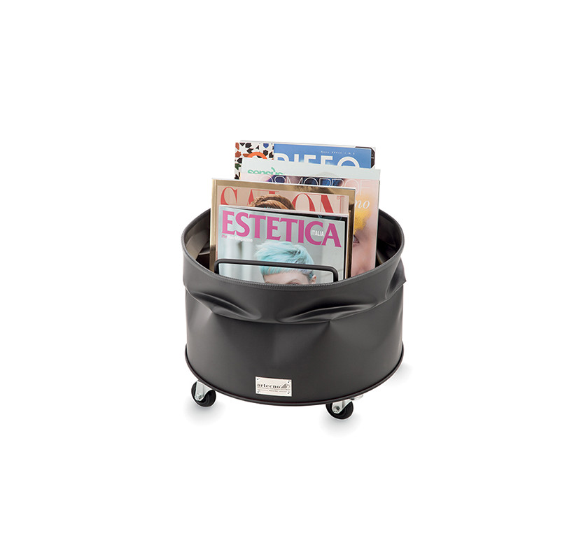 Оригинальная тележка из окрашенной стали идеально подходит для хранения журналов.