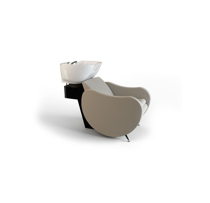 Парикмахерская мойка. Мойка оснащена металлическим каркасом черного цвета, мягкими и комфортными подлокотниками, ножками из полированного алюминия. Мойка комплектуется глубокой керамической раковиной с регулировкой угла наклона и комплектом смесителя. Обивка - искусственная кожа высшего качества.