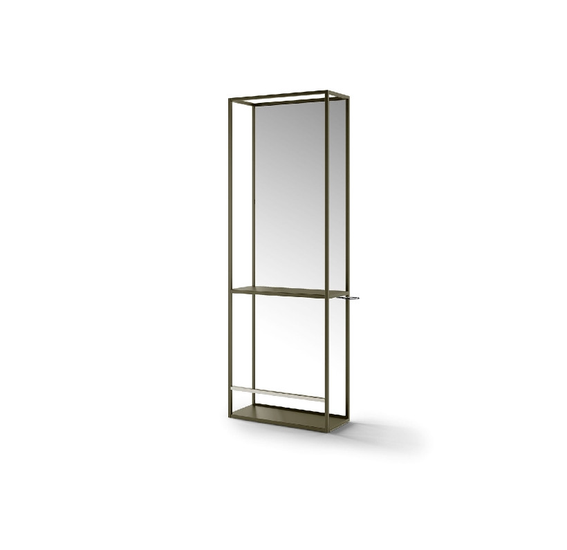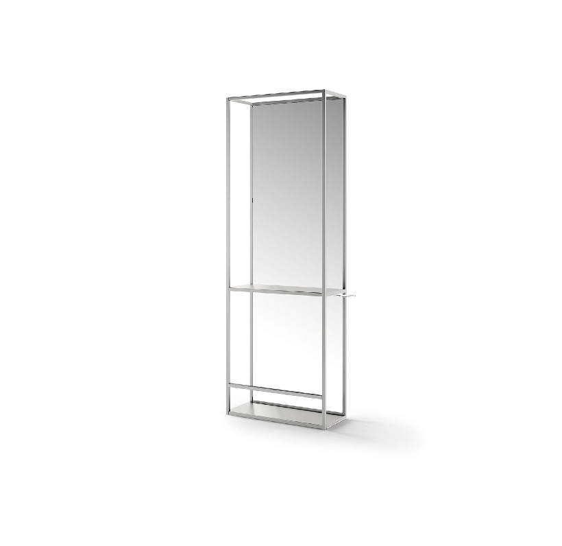 Зеркало парикмахерское с металлическим каркасом. Каркас и столешница зеркала окрашены в черный матовый цвет. Зеркало оснащено металлической столешницей и подставкой для ног. Не требует крепление к стене.