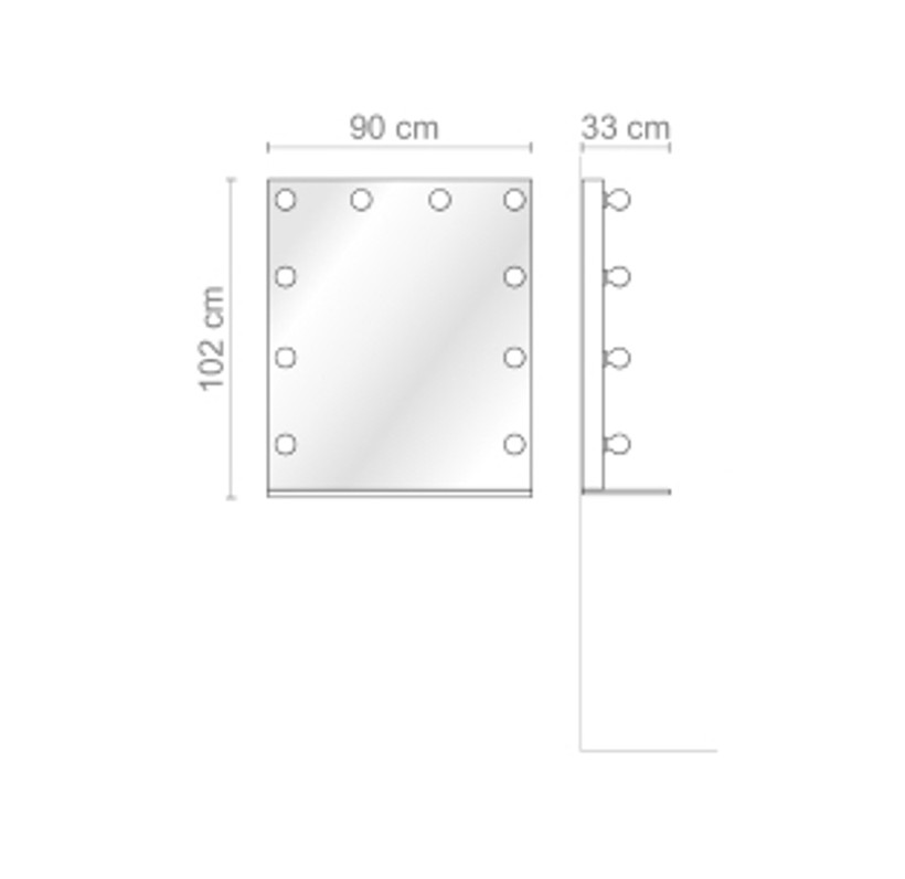 для визажа с лампочками. Зеркало оснащено подсветкой и ламинированной