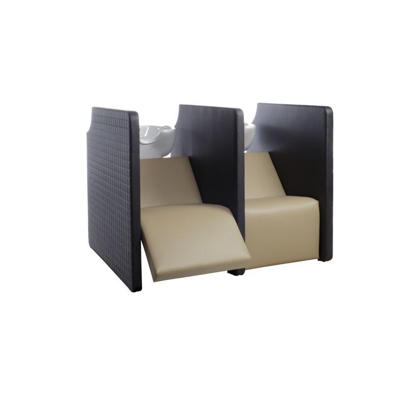 Мойка парикмахерская - двухместная с высоким уровнем комфорта и приватной зоной. Мойка оснащена электрической подножкой, обеспечивая клиенту максимальный комфорт. Мойка комплектуется глубокими керамическими раковинами с регулировкой угла наклона и комплектом смесителя. Обивка - искусственная кожа высшего качества.
