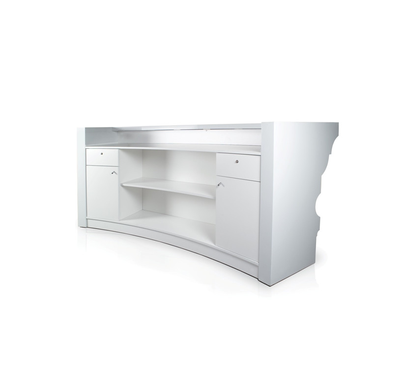 Стойка администратора с изогнутым фасадом, выполнена из пластика.