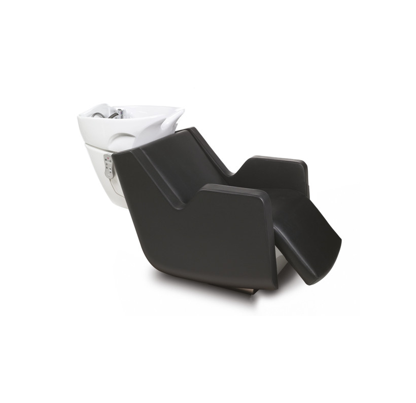 Парикмахерская мойка. Мойка оснащена мягкими и комфортными подлокотниками, системой воздушного массажа AIR-SHIATSU и электрической подножкой, что позволяет клиенту принять положение "полулежа" обеспечивая максимальный комфорт. Также мойка оснащена электромотором с возможностью регулировки высоты кресла, подъем на 26 см. Регулировка осуществляется вверх-вниз по вертикали из каркаса мойки. Мойка комплектуется глубокой округлой керамической раковиной с регулировкой угла наклона и комплектом смесителя. Обивка - искусственная кожа высшего качества.