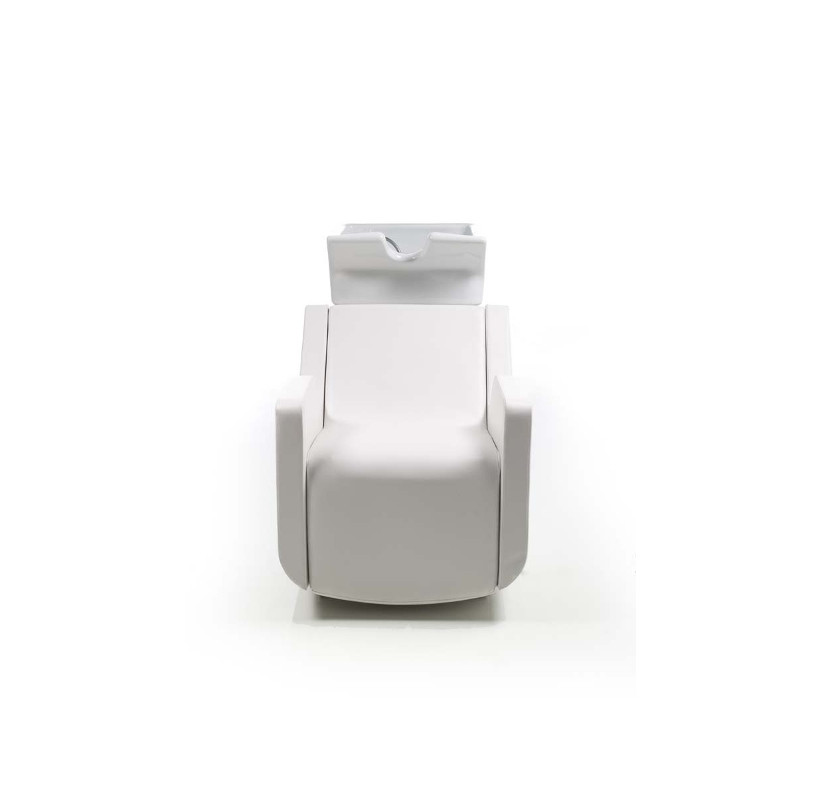 Парикмахерская мойка. Мойка оснащена мягкими и комфортными подлокотниками. Эргономика посадочного места позволяет клиенту принять положение "полулежа" обеспечивая максимальный комфорт. Мойка комплектуется глубокой квадратной керамической раковиной с регулировкой угла наклона и комплектом смесителя. Обивка - искусственная кожа высшего качества.
