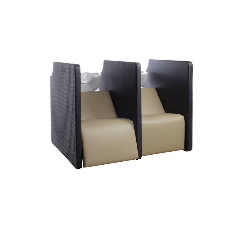 Мойка парикмахерская - двухместная с высоким уровнем комфорта и приватной зоной. Мойка оснащена системой воздушного массажа AIR-SHIATSU. Также мойка оснащена электрической подножкой, обеспечивая клиенту максимальный комфорт. Мойка комплектуется глубокими керамическими раковинами с регулировкой угла наклона и комплектом смесителя. Обивка - искусственная кожа высшего качества.
