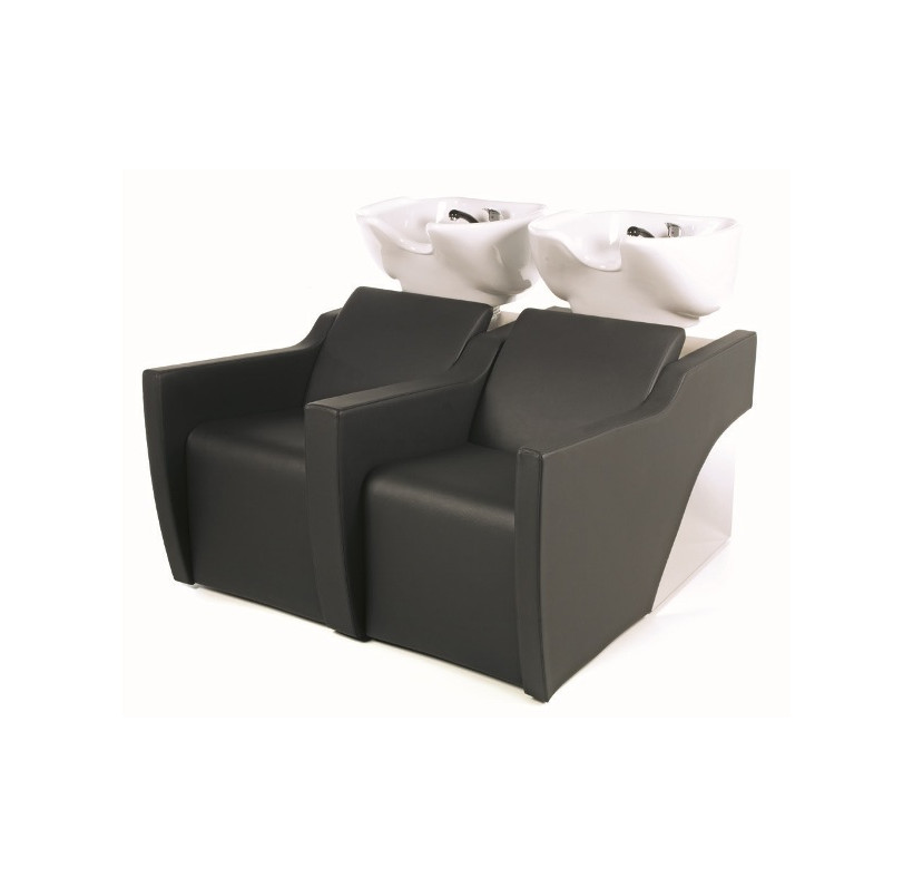Компактная парикмахерская мойка - двухместная. Мойка оснащена металлическим каркасом, тумбой с полками для хранения полотенец, мягкими и комфортными подлокотниками и электрической подножкой, что позволяет клиенту принять положение "полулежа" обеспечивая максимальный комфорт. Также мойка оснащена системой воздушного массажа AIR-SHIATSU. Мойка комплектуется глубокими керамическими раковинами с регулировкой угла наклона и комплектом смесителя. Обивка - искусственная кожа высшего качества.