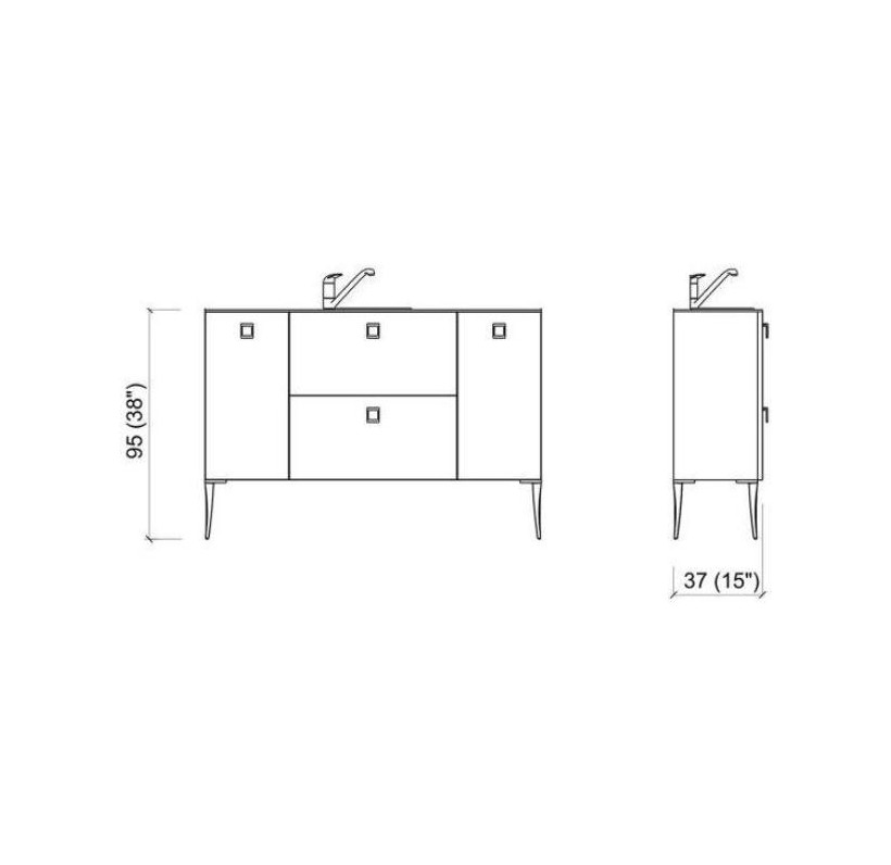 Лаборатория оснащена двумя навесными полками, выдвижными ящиками, дверцами, металлическими ножками и водонепроницаемой столешницей с интегрированной раковиной из нержавеющей стали со смесителем. Лаборатория выполнена в ламинате (только в этих цветах): черный (U 007 NERO), белый (BIANCO 003).