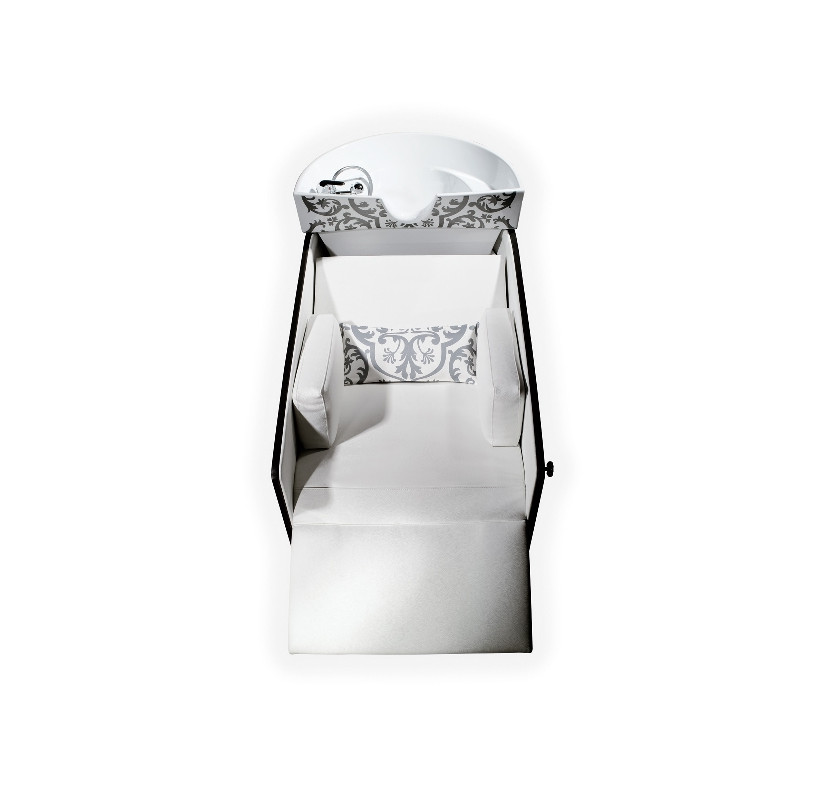 Элегантная мойка с высоким уровнем комфорта. Мойка оснащена мягкими и комфортными подлокотниками, декоративной ручкой для подвешивания сумок, электрической регулировкой сидения, спинной части и опоры для ног, обеспечивая клиенту максимальный комфорт. Движения синхронизированные, что позволяет клиенту принять положение "полулежа". Также мойка оснащена системой воздушного массажа AIR-SHIATSU. Отделка каркаса мойки - искусственная кожа. Мойка комплектуется глубокой керамической раковиной с механизмом скольжения по горизонтали, регулировкой угла наклона и комплектом смесителя. Обивка - искусственная кожа высшего качества.