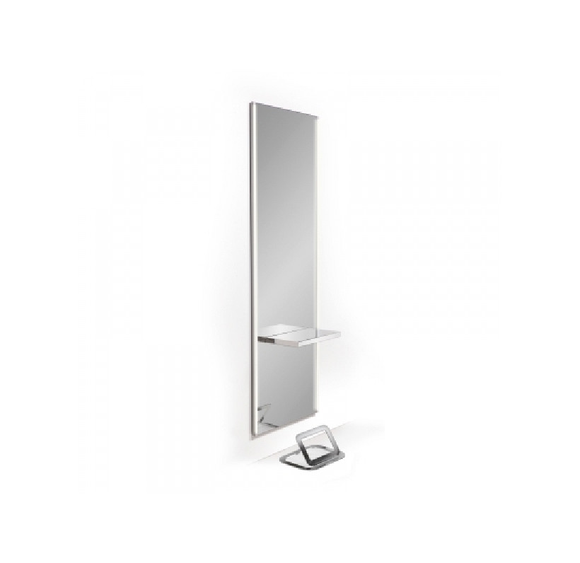 Зеркало парикмахерское с подсветкой. Зеркало оснащено светодиодной подсветкой LED, столешницей из нержавеющей стали и подставкой под ноги. Крепление к стене.