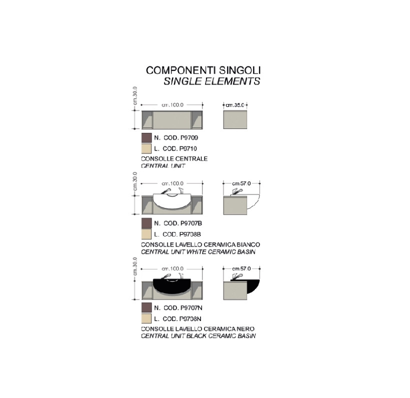 B9707BS - CONSOLLE CENTRALE LAV. - 2 шт. Цвет раковины: белый