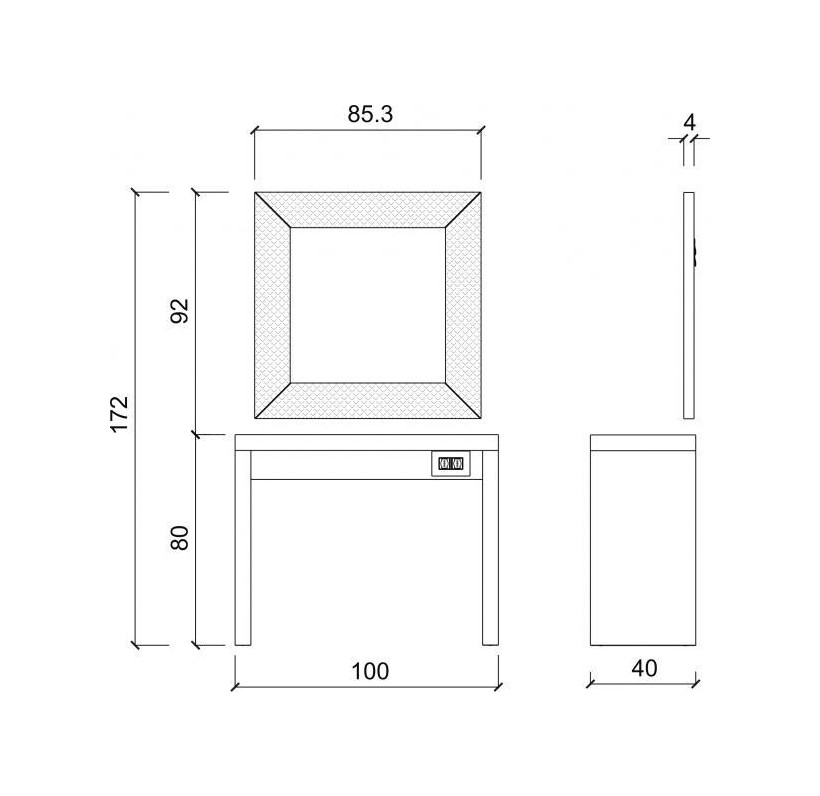 Рабочий туалет на одно место. Рабочий туалет оснащен зеркалом прямоугольной формы в декоративной раме и рабочим столиком. Крепление к стене.