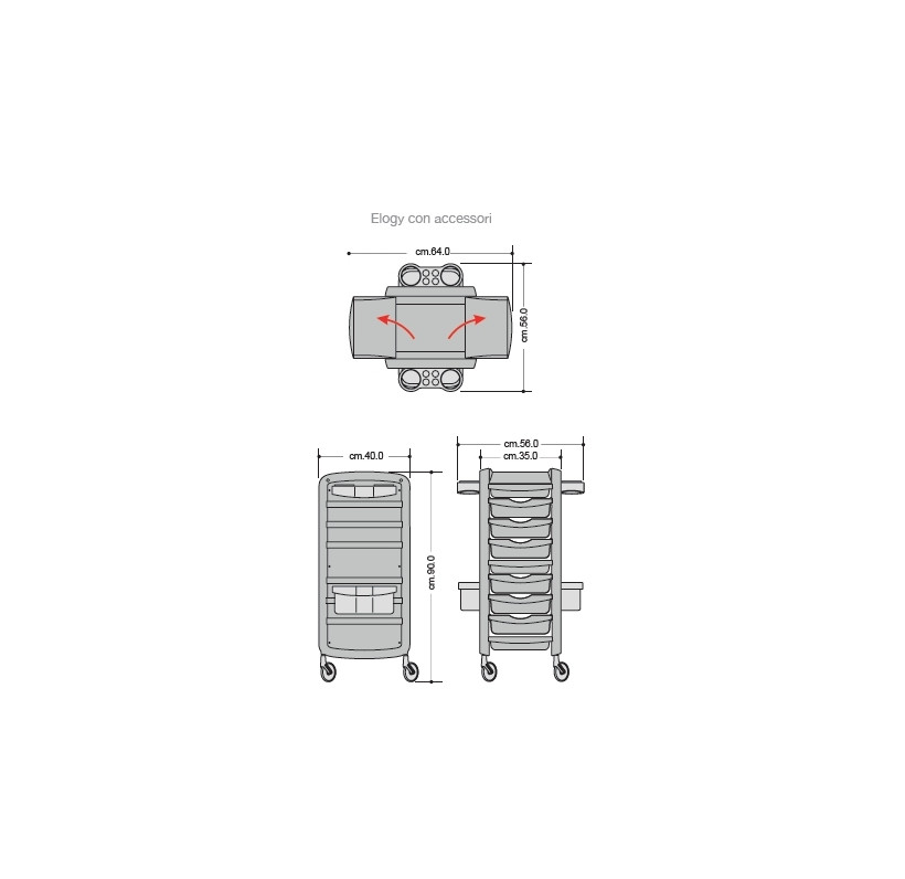 пластика. Тележка оснащена шестью выдвижными ящиками, съемными боковыми