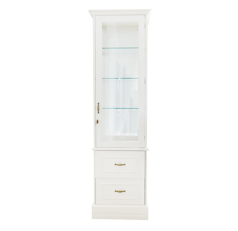 Материалы высокого качества, изящные формы, роскошный декор и все это с невероятной практичностью и долговечностью делает мебель в классическом стиле привлекательным вариантом для интерьера салона красоты и мастерской любого уровня. Витрина изготовлена из МДФ и массива ясеня, имеет эмалированное покрытие. Мебель в классическом стиле прослужит очень долго и всегда будет в моде.