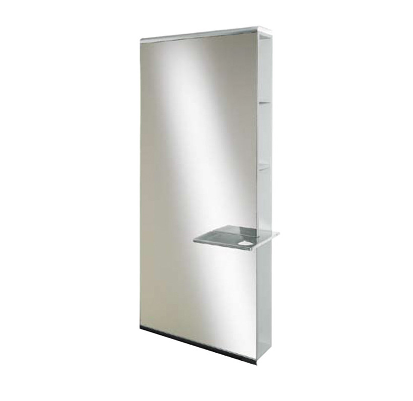 Одностороннее зеркало с боковыми полками. Оснащено столешницей с отверстием для фена.