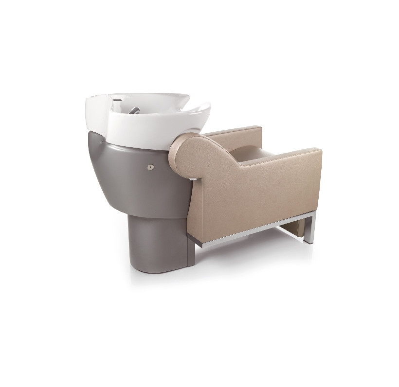 Эргономичная мойка с высоким уровнем комфорта. Мойка оснащена металлическим каркасом серебристого цвета, мягкими и комфортными подлокотниками и электрической подножкой, что позволяет клиенту принять положение "полулежа" обеспечивая максимальный комфорт. Мойка комплектуется глубокой керамической раковиной с регулировкой угла наклона и комплектом смесителя. Обивка - искусственная кожа высшего качества.