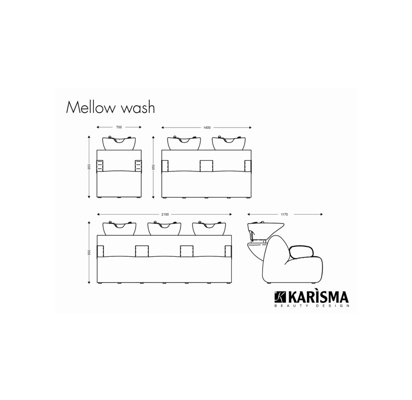 Модульная система MELLOW WASH 3 - это трехместная парикмахерская мойка без подлокотников, в которой совмещается оригинальный дизайн, удобство и функциональность. Каркас кресла изготовлен из многослойной фанеры, выполнен из высококачественного полиуретана. Кресло оснащено мягкими и комфортными подушками-подлокотниками. Обивка - искусственная кожа высшего качества. Мойка комплектуется глубокой керамической раковиной с регулировкой угла наклона и комплектом смесителя. В качестве дополнительной опции возможно приобрести два вида подлокотников: стандартные боковые подлокотники или подлокотники с разделителем зоны клиента.