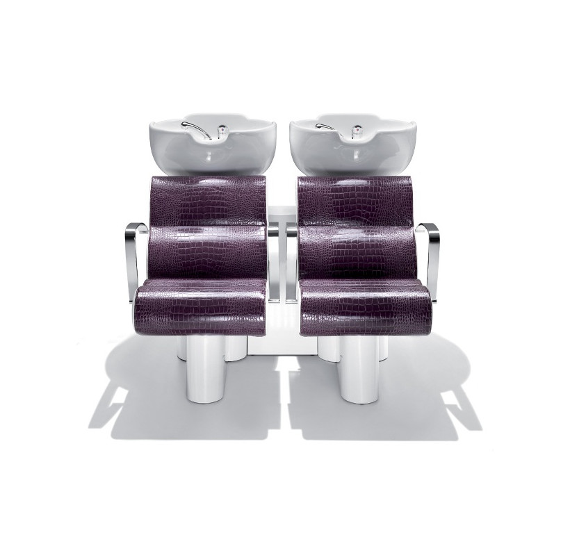 Мойка с каркасом из оцинкованной стали с порошковым покрытием в белом или темно-сером цвете и креслом для клиента. Каркас кресла изготовлен из многослойной фанеры, выполнен из высококачественного полиуретана. Кресло оснащено литыми алюминиевыми подлокотниками, отполированными и хромированными. Обивка - искусственная кожа высшего качества. Мойка комплектуется глубокой керамической раковиной с регулировкой угла наклона и комплектом смесителя.