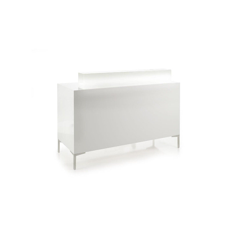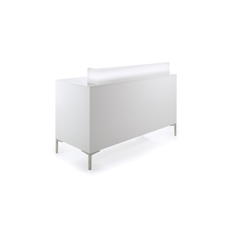 Стойка администратора. Выполнена в меламине. Стойка администратора оснащена дополнительной рабочей поверхностью из оргстекла белого цвета с подсветкой.
