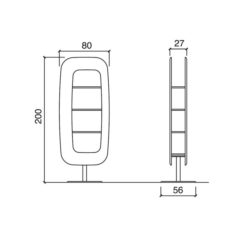 Напольная витрина с тремя полками. Каркас витрины выполнен из пластика белого или черного цвета. Витрина оснащена полками и металлическим основанием круглой формы.