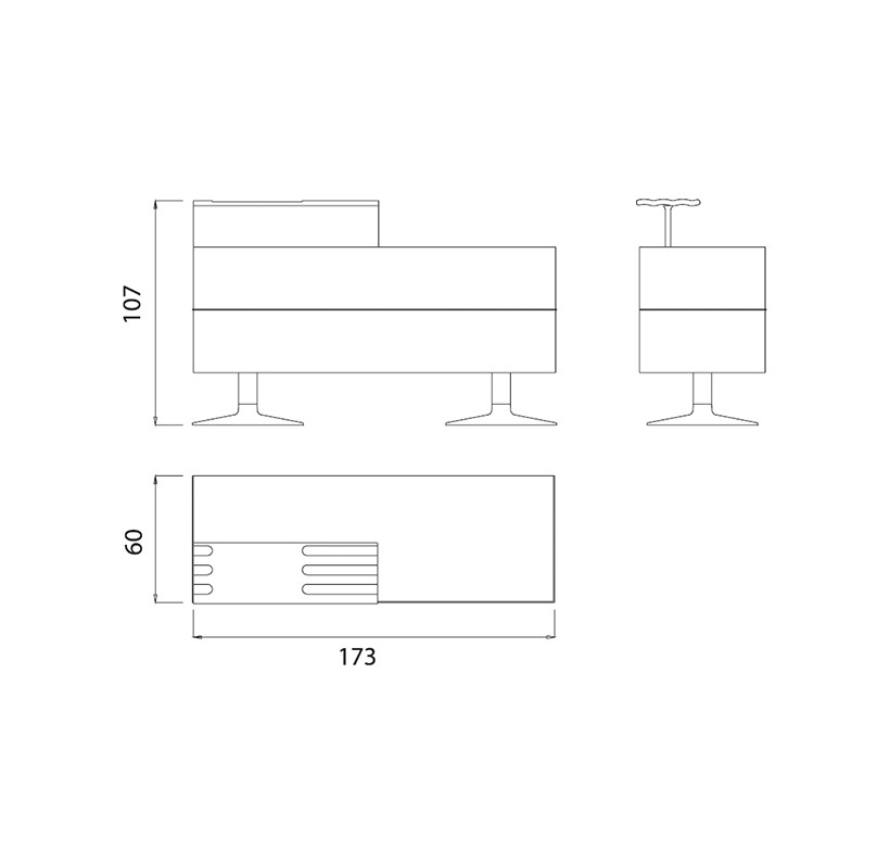 Стойка администратора. Выполнена в ламинате. Стойка администратора оснащена дополнительной рабочей поверхностью (полочкой) из нержавеющей стали и алюминиевыми основаниями квадратной формы.