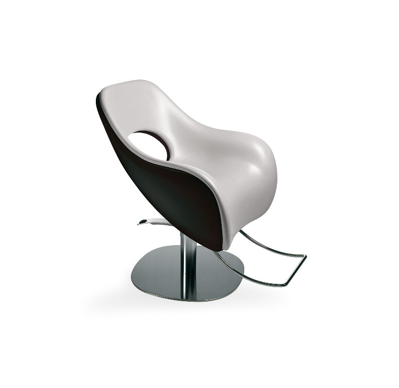 Дизайнерское парикмахерское кресло. Кресло для клиента комплектуется дисковым основанием из нержавеющей стали и гидроподъемником с блокировкой. Кресло оснащено белым лакированным каркасом и комфортными подлокотниками. Обивка - искусственная кожа высшего качества (только в этих цветах):
