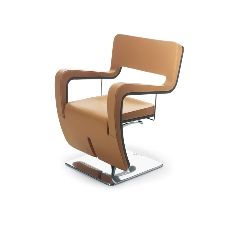 Дизайнерское парикмахерское кресло. Кресло для клиента комплектуется металлическим хромированным квадратным основанием и гидроподъемником с блокировкой. Кресло оснащено комфортными подлокотниками. Каркас кресла выполнен из дерева. Обивка - искусственная кожа высшего качества.