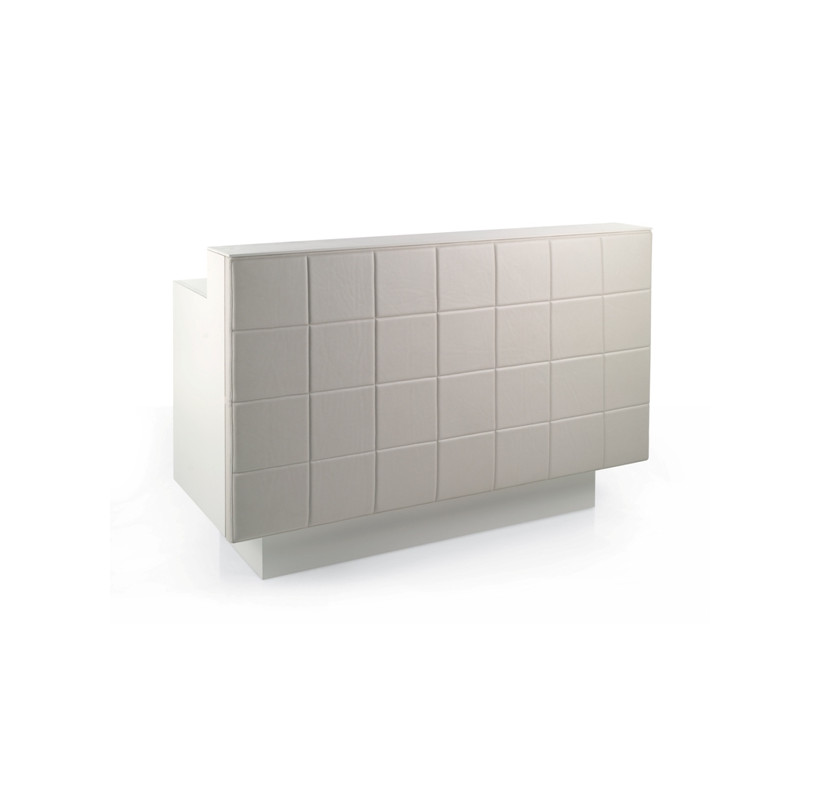 Стойка администратора прямоугольной формы с декоративной отделкой фасада из искусственой кожи. Корпус и наполнение выполнены в ламинате. Обивка - искусственная кожа высшего качества.