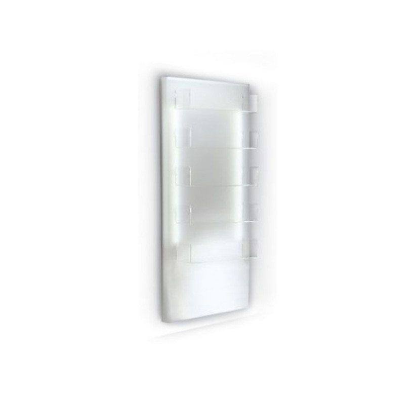 Навесная витрина с пятью полками. Каркас витрины выполнен из акрила белого цвета. Витрина оснащена подсветкой. Крепление к стене.