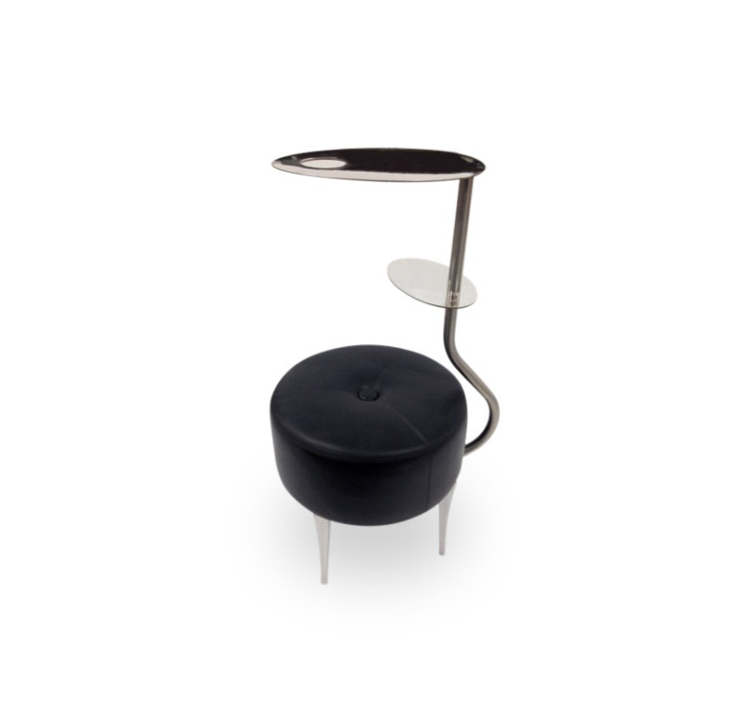 Пуф для размещения сумок. Пуф оснащен фенодержателем, полочкой и алюминиевыми ножками. Обивка - ткань или искусственная кожа высшего качества.
