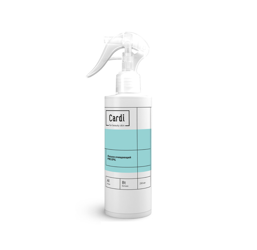 Лосьон PRE EPIL уходовой линейки Cardi – очищающее средство для подготовки кожи к процедуре шугаринга и ваксинга. Мягко воздействует: дезинфицирует, обезжиривает и предупреждает появление раздражения и покраснения после процедуры депиляции, обеспечивает прилегание пасты и качественный захват волосков, что позволяет провести депиляцию быстро и с первого раза. Подходит для использования на деликатных зонах и больших участках кожи. Он обезжиривает кожу, не оставляя липкой пленки, и эффективно удаляет загрязнения, не нарушая гидролипидный баланс. Очищающий лосьон предотвращает раздражения и покраснения, делая процесс процедуры более комфортным и менее болезненным. Благодаря своим антибактериальным свойствам, он помогает предотвратить возникновение инфекций. За счёт натурального состава, средство для деликатного очищения увлажняет кожу, предотвращает ее обезвоживание и смягчает ее, укрепляя клеточные мембраны. В результате применения этого продукта кожа становится гладкой, мягкой и эластичной. В составе находятся следующие компоненты: очищенная вода, глицерин, алое вера, изопропиловый спирт, бетаин, парфюм. Лосьон для очищения перед депиляцией PRE EPIL подходит для всех типов кожи и помогает сделать процесс подготовки к процедуре депиляции наиболее комфортным. Следует соблюдать меры предосторожности: 1) только для наружного применения; 2) избегать попадания в глаза; 3) применять для профессионального использования. Хранить в сухом месте при температуре +5 до +25 градусов.