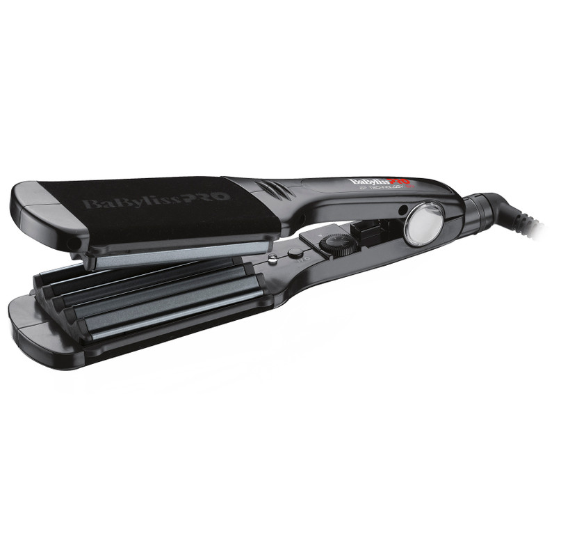 Профессиональные щипцы-гофре для волос BaByliss PRO BAB2512EPCE EP TECHNOLOGY 5.0. Пластины шириной 60мм с технологией покрытия EP TECHNOLOGY, механический терморегулятор 5 температурных режимов (120°C-140°C-160°C-180°C-200°C), тип полотен-крупное гофре, термозащитное велюровое покрытие, кнопка On/Off (вкл./выкл.) и световой индикатор, мощность 125Вт, вращающийся шнур 2,70м.
