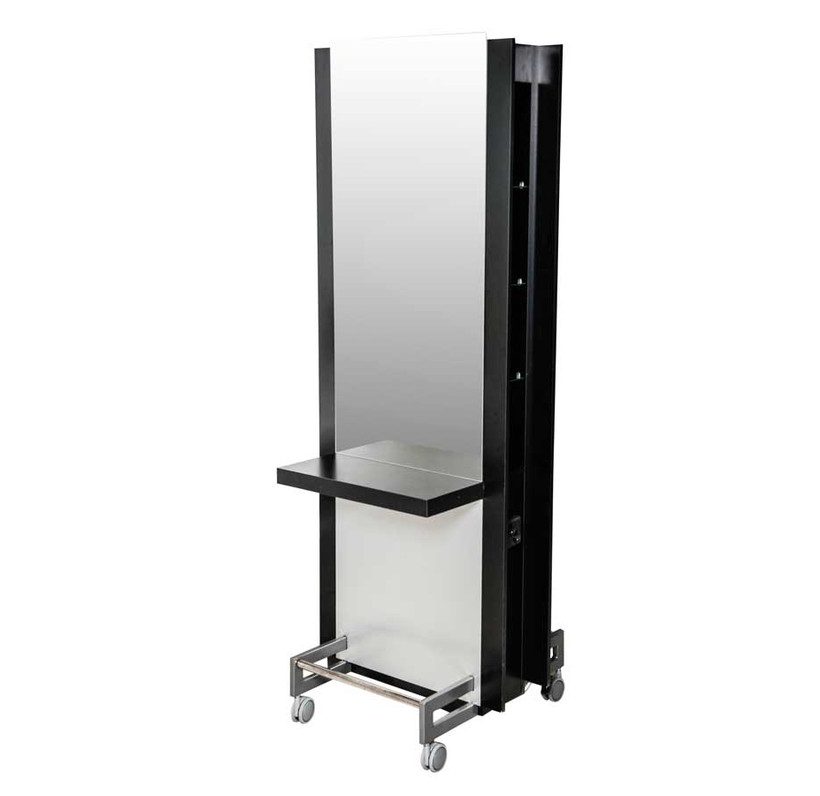 Изящный и функциональный двусторонний рабочий туалет ДУЭТ 2 Элипс подойдет для островного размещения в салоне красоты, оказания экспресс-услуг, обучающих центров, выездных мероприятий и организации рабочего места там, где нет возможности закрепить парикмахерское зеркало к стене. Устойчивость конструкции зеркала обеспечивают стальной каркас и надежные колеса с фиксаторами.