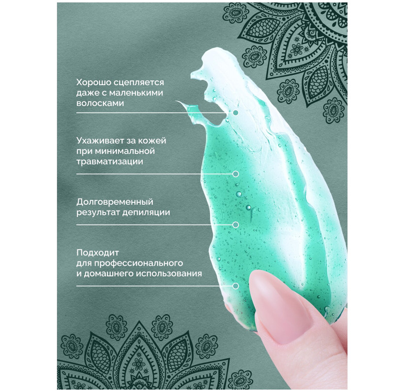 Цвет воска – салатовый, что придает процедуре восковой эпиляции эстетический вид.