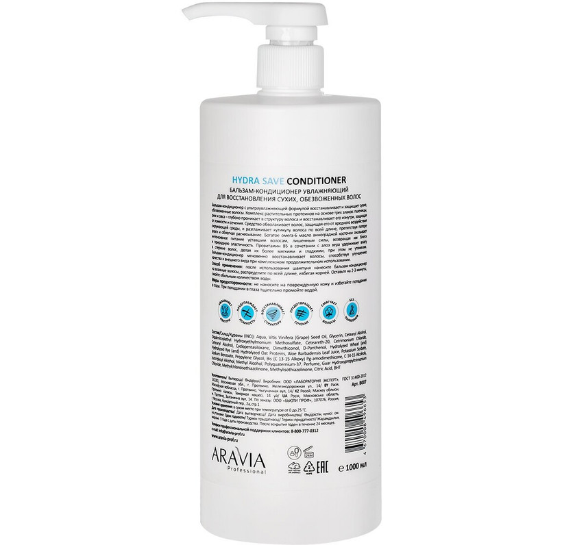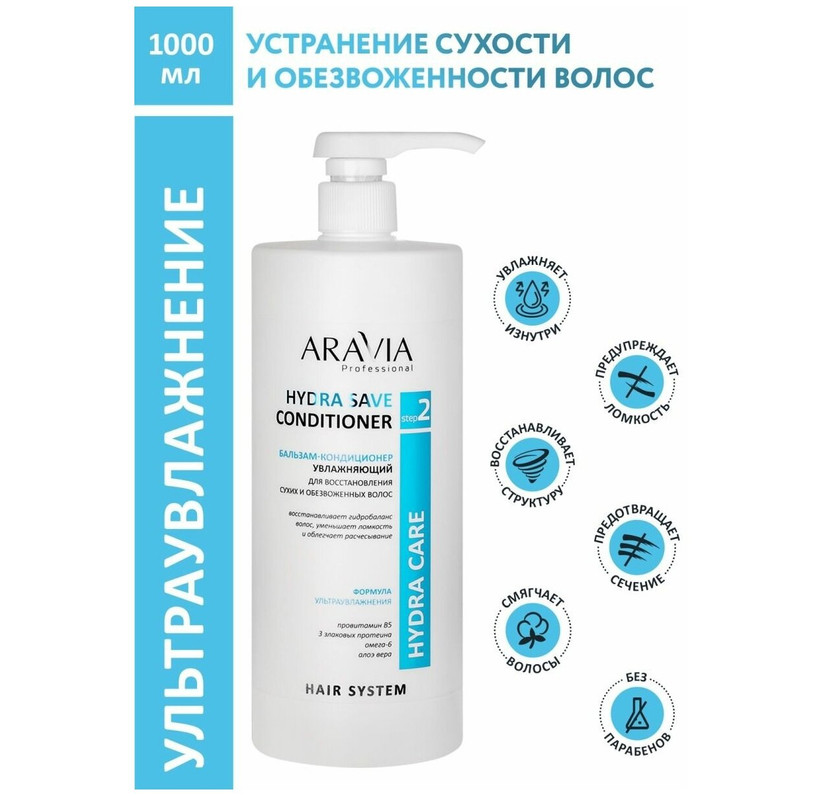 ARAVIA Professional Бальзам-кондиционер увлажняющий для восстановления сухих, обезвоженных волос Hydra Save Conditioner, 1000 мл