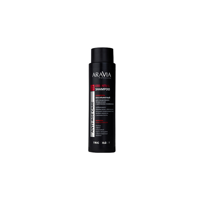 ARAVIA Professional Шампунь бессульфатный для ежедневного применения с биотином и кофеином Essential Shampoo, 420 мл/9