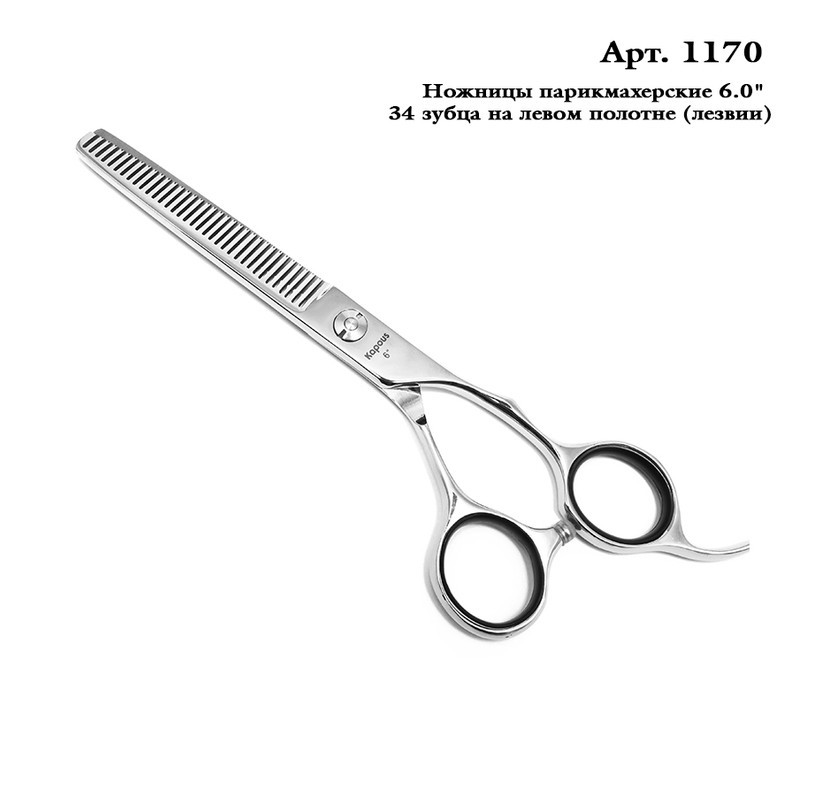 Особенностью ножниц является наличие 34 зубцов на левом полотне, что позволяет создавать филированные линии и создавать уникальные образы.