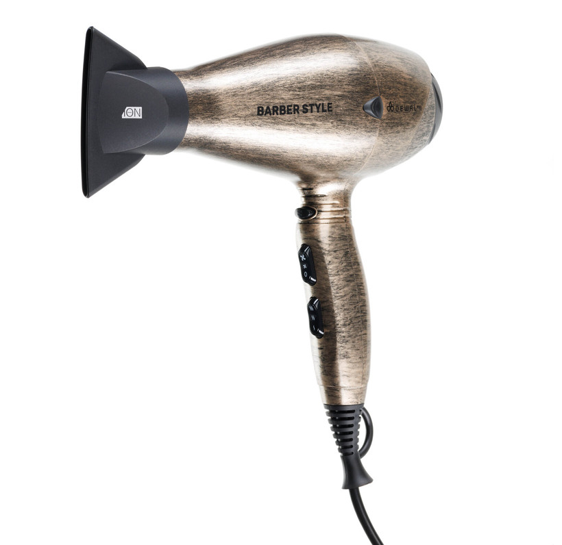 Фен DEWAL PRO BARBER STYLE, бронзовый, вес 570гр, 2200Вт, ионизация, 2 насадки, провод 3м