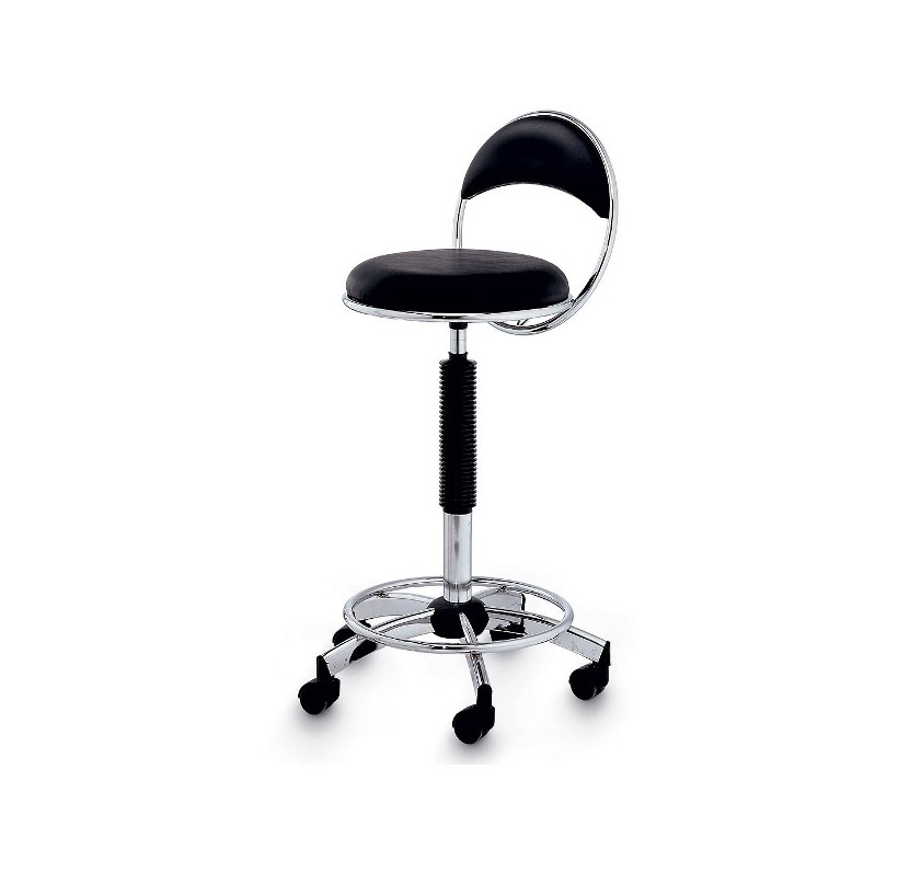 Высокий стул мастера. Стул оснащен алюминиевым основанием в форме пятилучья с опорой для ног, колесами и газлифтом для регулировки высоты. Обивка - искусственная кожа высшего качества.